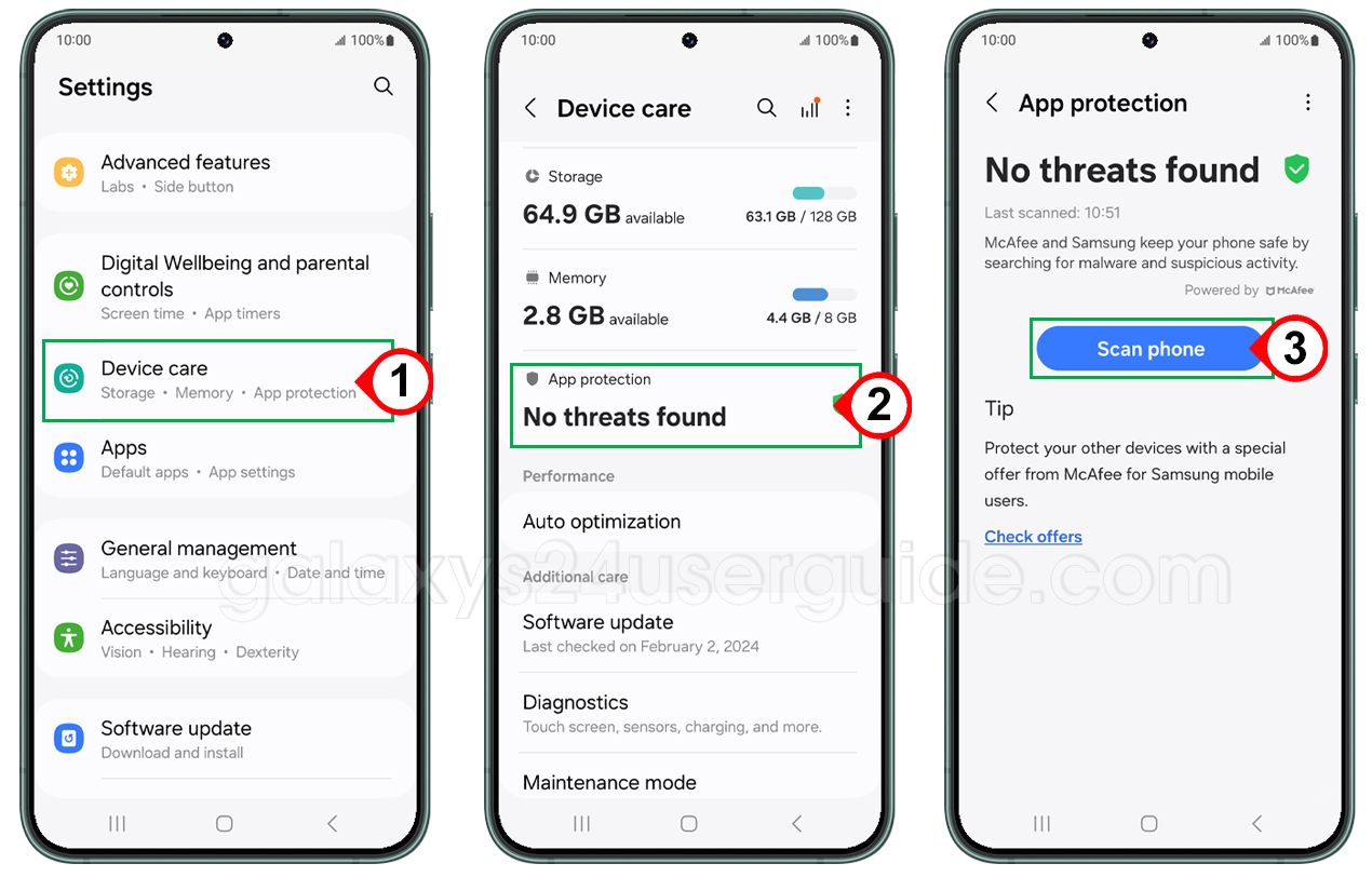 You can manually scan your Samsung Galaxy S24 to check for security threats.