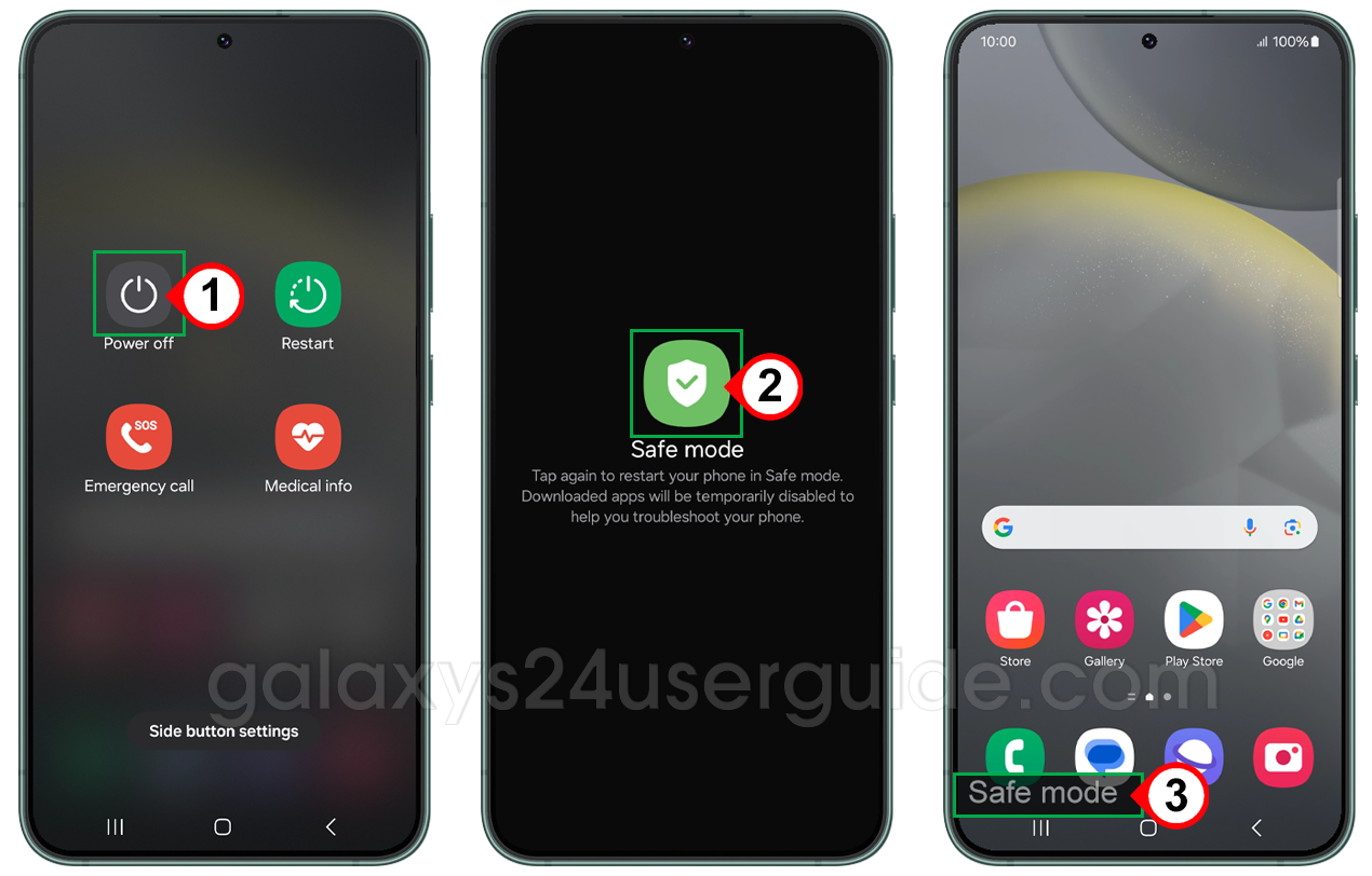 - Tap Safe Mode and your phone will restart and boot into safe mode. Safe Mode will appear on the bottom left of the screen.